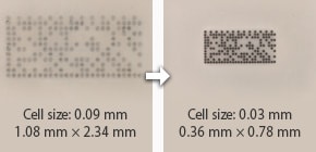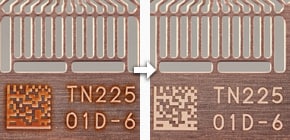 A characteristic of UV lasers (with a wavelength of 355 nm) is their extremely high absorption rate for various materials. UV lasers allow for high-contrast and damage-free marking and processing in applications where materials with poor visibility and the effect of heat are concerns with conventional standard-wavelength (1064 nm) laser markers. Furthermore, the distance sensor and multi-function camera built into the laser head enable automatic correction of deviations in the distance to the target and in the position while the target is moving. Additionally, the ability to monitor the laser output and to monitor for dirt on the lens prevents marking errors prior to use, allowing for stable operation.