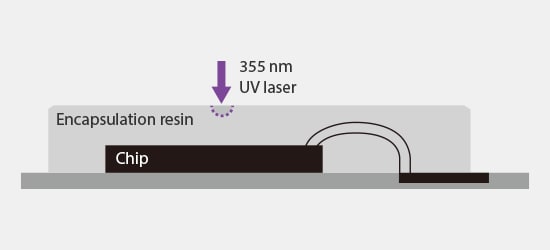 Because UV lasers have a high absorption rate, the laser light is absorbed by the surface of the encapsulation resin, which can reduce internal damage.