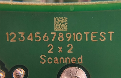 A barcode reader was used to confirm the quality and stability of marked codes and achieved 100% reading results. Since the materials used in PCBs can be very heat-sensitive, too much heat can distort or ruin a mark. Precise control of the heat and energy during marking helps to ensure a highly visible, crisp mark.