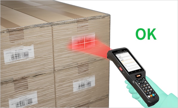 Nearby codes are read by the high-speed monochrome camera while far codes are read by the high-resolution colour camera.