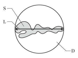 Dividing the area of (S) by the area of (D) gives you the roundness factor.