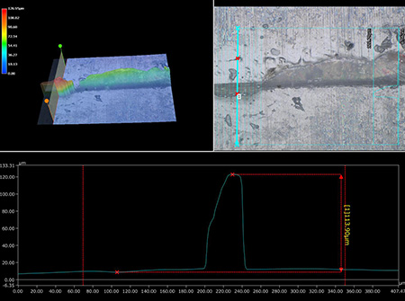 The VHX Series is equipped with a high-resolution lens and 4K CMOS, which enables accurate observation, quantitative 2D and 3D evaluation, and automatic report creation.