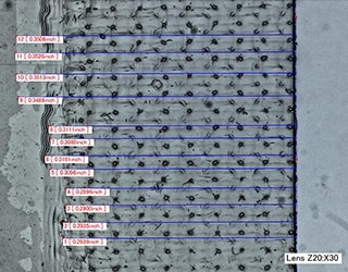 With the VHX Series 4K Digital Microscope, hydrophilic coatings can be easily observed due to the HDR function and high-definition 4K images. The coating film thickness can also be measured with the VHX.