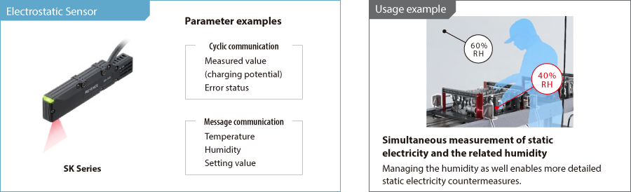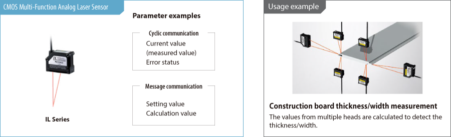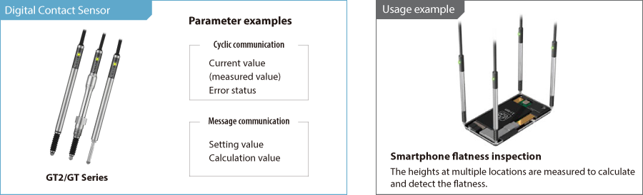 This section introduces typical examples of parameters that can be checked with the cyclic communication and message communication of each sensor.
