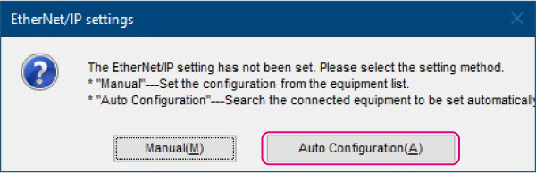 3. The following dialogue will be displayed. Click “Auto Configuration (A)”.