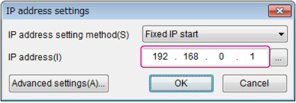 6. Click the IP address, and then set the DL-EP1 IP address to “192.168.0.1” in the [IP address settings] dialogue box.