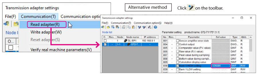 Click [Write adapter (W)] to write the setting value to the sensor.